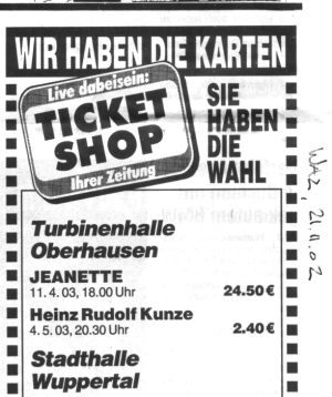 eins wollte ich dir immer schon sagen: Das du damals im Januar 1986 in der ZDF-Hitparade aufgetreten bist, habe ich dir nie wirklich verziehen - aber vielleicht brauchtest du das Geld, oder wolltest dein Image ändern - wer weiß das jetzt noch. Fünfunddreißig Tage warst du in den Deutschen Top-20. Dein war mein (nicht unbedingt) ganzes Herz bis zu diesem Tag, weil deine Texte einiges an Ordnung in mein 17- bis 20jähriges Hirn brachten.